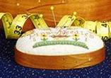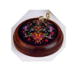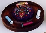 Round Pincushion 3¾" round design area. Includes foam to mount your needlework