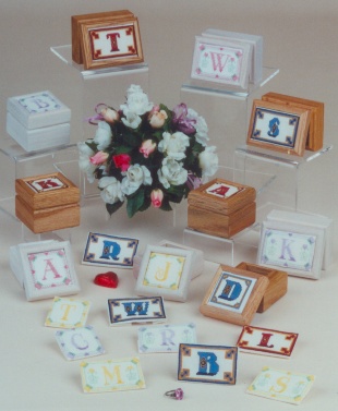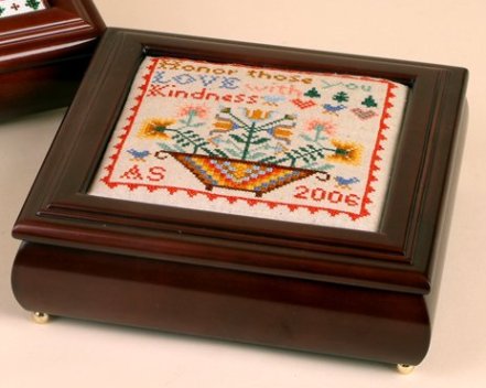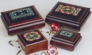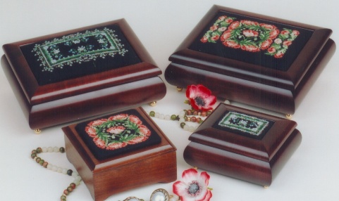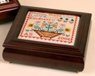 New Betsy Box (5 x 5 design area) | Laura's Box (6 x 6 design area - mahogany finish) | 9 " square Oak Box (7 1/4" design area) | Ring Box (Pickled White) | Keepsake Box (lucite crystal) |